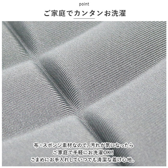 ・布+スポンジ素材なので、汚れが気になったらご家庭で手軽にお洗濯OK!こまめにお手入れしていつでも清潔な着け心地。