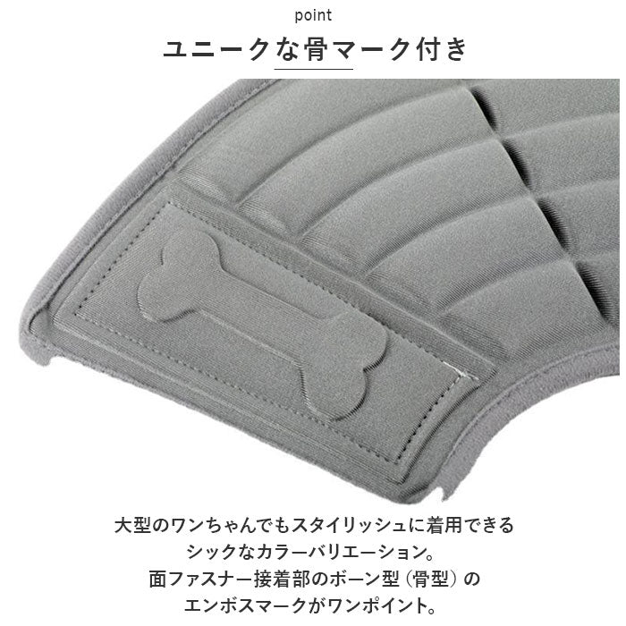 ・大型のワンちゃんでもスタイリッシュに着用できるシックなカラーバリエーション。面ファスナー接着部のボーン型(骨型)のエンボスマークがワンポイント。