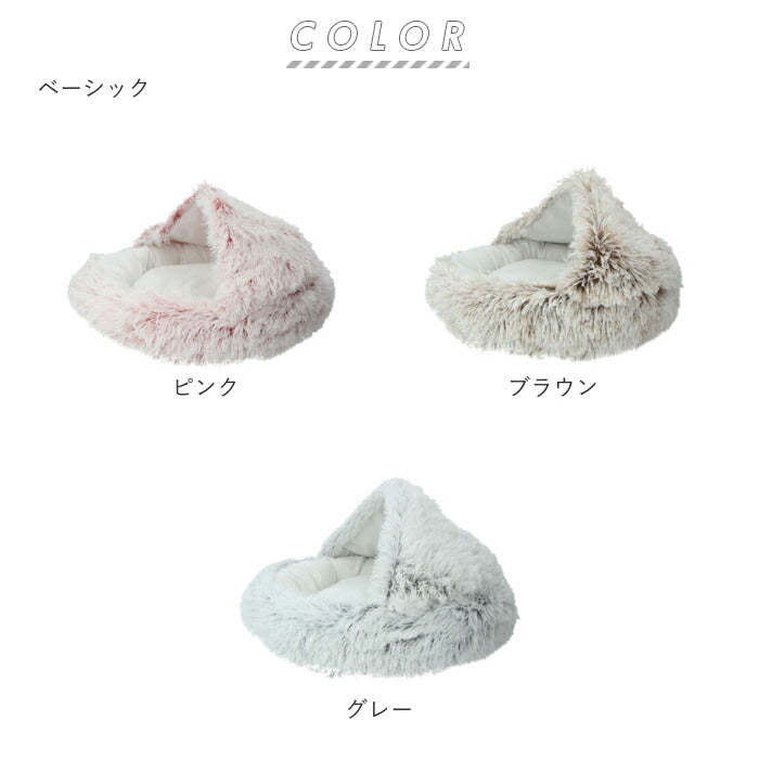 ペット ベッド ドーム 型 通販 丸型 クッション ベーシック フェイクファー ロングファー マカロン ドーム型 マカロンベッド 冬ベッド 冬用ベッド 滑り止め付き ふかふか ふわもこ