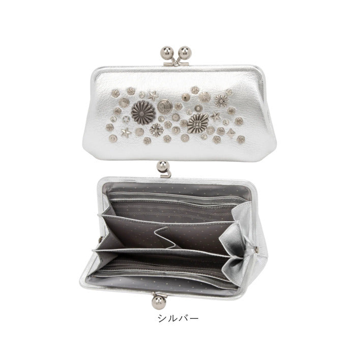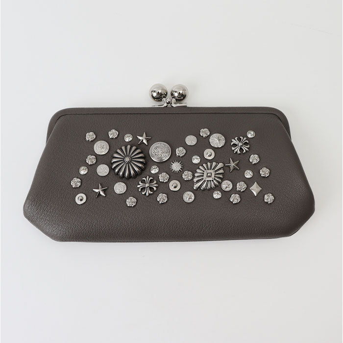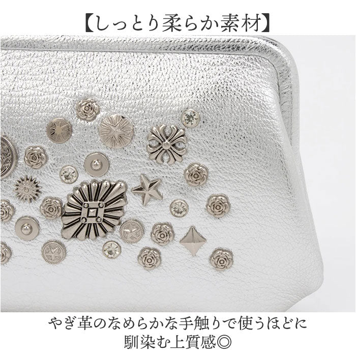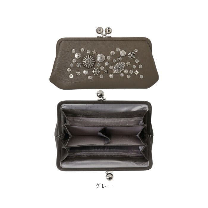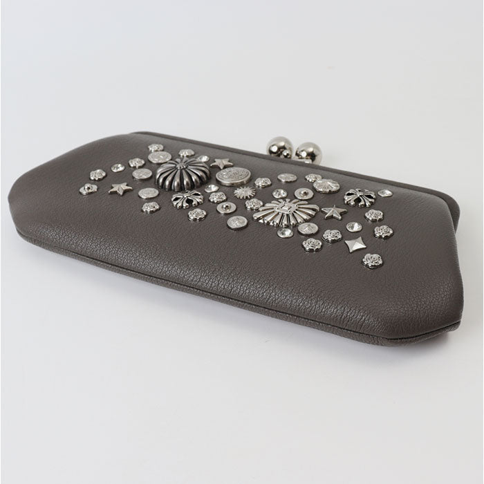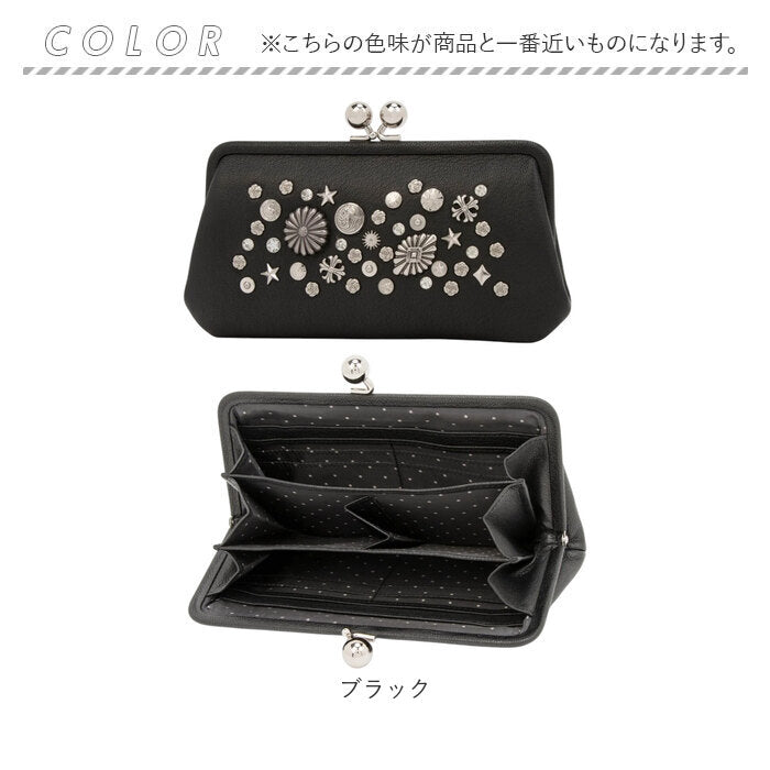 【本革にスタッズが際立つがま口ロングウォレット】