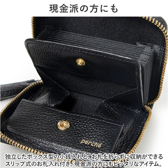 ペルケ 財布 perche 08-06-03891 通販 カードケース ブランド 二つ折り財布 二つ折り 折財布 レディース おしゃれ シンプル ラウンドファスナー 無地 きれいめ タッセル