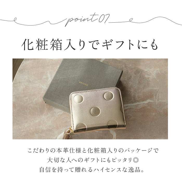 ペルケ 財布 perche 08-06-03910 通販 二つ折り財布 ブランド 二つ折り 折財布 お財布 レディース ラウンドファスナー おしゃれ シンプル 型押し ドット 水玉 きれいめ