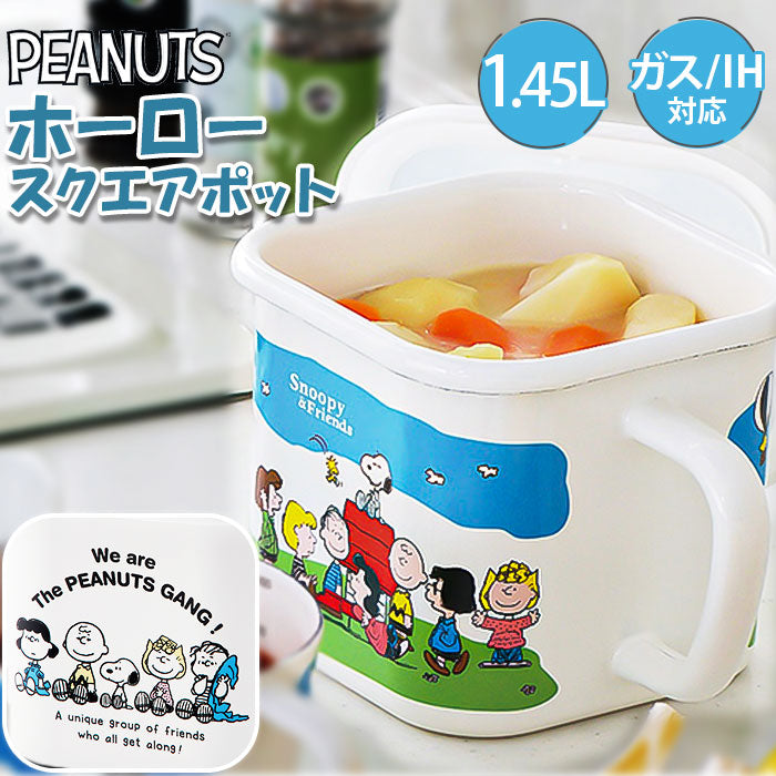 ホーロー 保存容器 スヌーピー 通販 味噌ポット 持ち手付き ホーローマルチスクエアポット ストッカー 容器 1.45L 琺瑯 ほうろう 直火 ガス火 IH対応 調理 PEANUTS SNOOPY ホーロー製