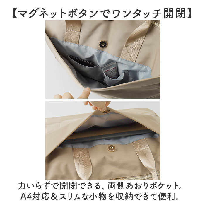 ・力いらずで開閉できる、両側あおりポケット。A4対応&スリムな小物を収納できて便利。