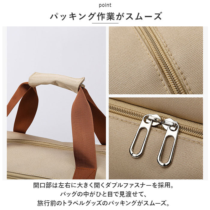 ・開口部は左右に大きく開くダブルファスナーを採用。バッグの中がひと目で見渡せて、旅行前のトラベルグッズのパッキングがスムーズ。