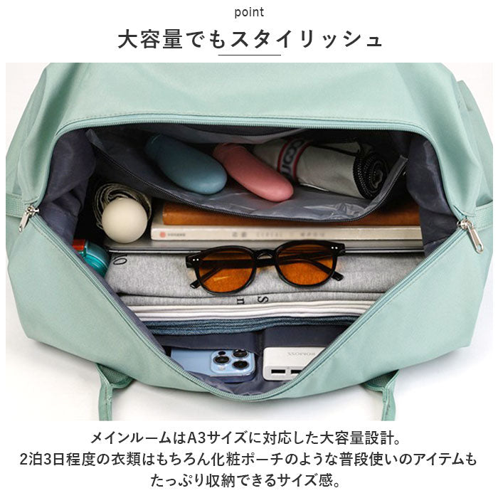※旅行用ボストンとしてだけでなくフィットネスジム用、荷物が多めになりがちな子育て中の方のママさんバッグなど、様々なシーンで大活躍。