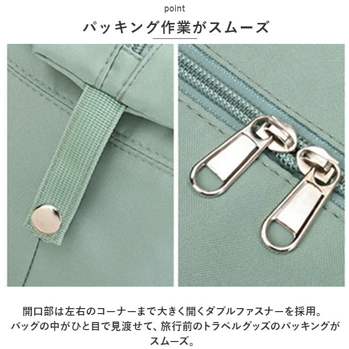 ・開口部は左右のコーナーまで大きく開くダブルファスナーを採用。バッグの中がひと目で見渡せて、旅行前のトラベルグッズのパッキングがスムーズ。