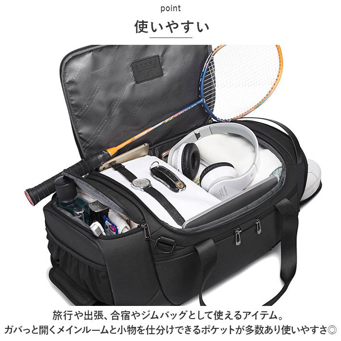 ・旅行や出張、合宿やジムバッグとして使えるアイテム。ガバっと開くメインルームと小物を仕分けできるポケットが多数あり使いやすさ◎