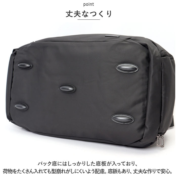 ・バック底にはしっかりした底板が入っており、荷物をたくさん入れても型崩れがしにくいよう配慮。底鋲もあり、丈夫な作りで安心。