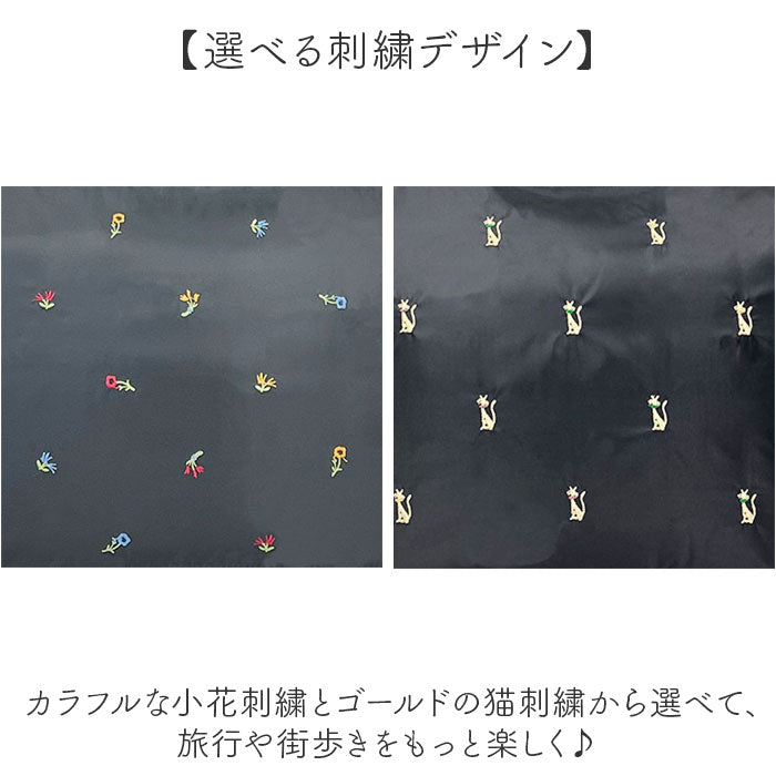 ・カラフルな小花刺繍とゴールドの猫刺繍から選べて、旅行や街歩きをもっと楽しく♪