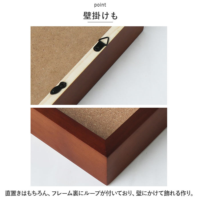 ・直置きはもちろん、フレーム裏にループが付いており、壁にかけて飾れる作りに。
