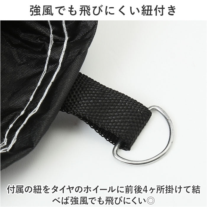 ・付属の紐をタイヤのホイールに前後4ヶ所掛けて結べば強風でも飛びにくい◎
