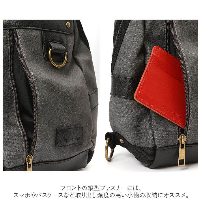 ・フロントの縦型ファスナーには、スマホやパスケースなど取り出し頻度の高い小物の収納にオススメ。