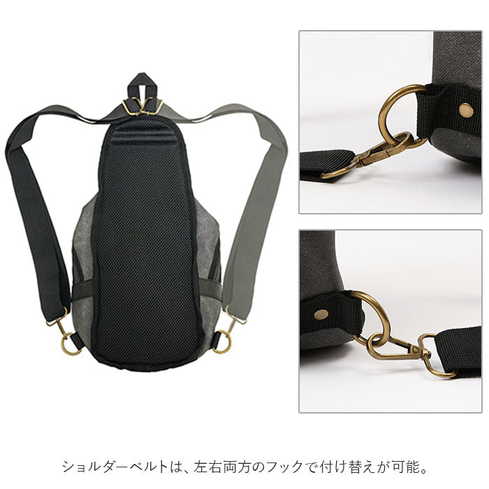 ・ショルダーベルトは、左右両方のフックで付け替えが可能。左掛け、右掛けどちらのスタイルでもOK!