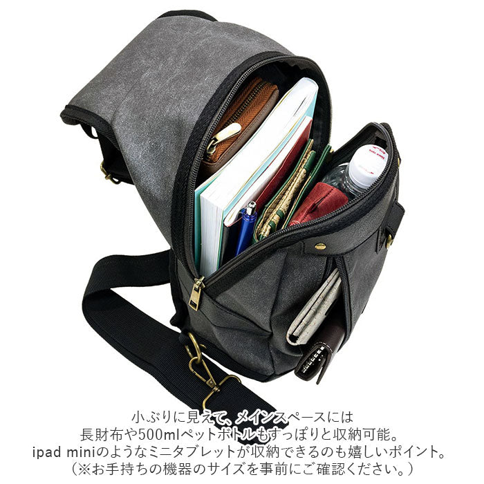 ・デニム調フェイクレザーがスタイリッシュ!ミニマム派に嬉しいコンパクトなボディバッグが新登場。