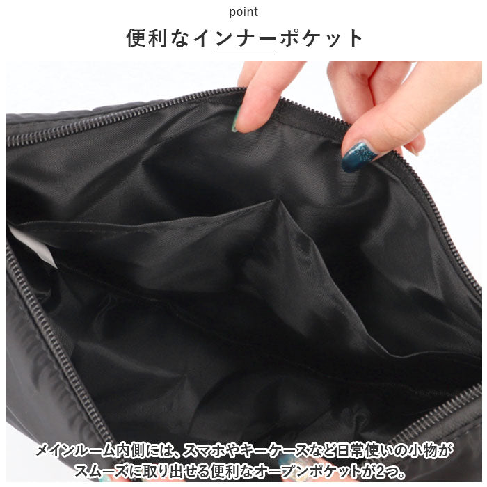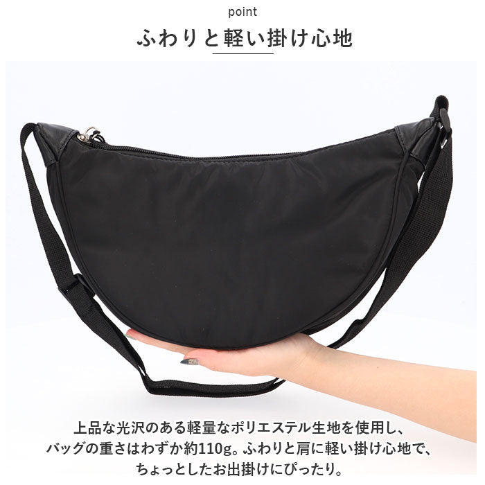 ・上品な光沢のある軽量なポリエステル生地を使用し、バッグの重さはわずか約110g。ふわりと肩に軽い掛け心地で、ちょっとしたお出掛けにぴったり。