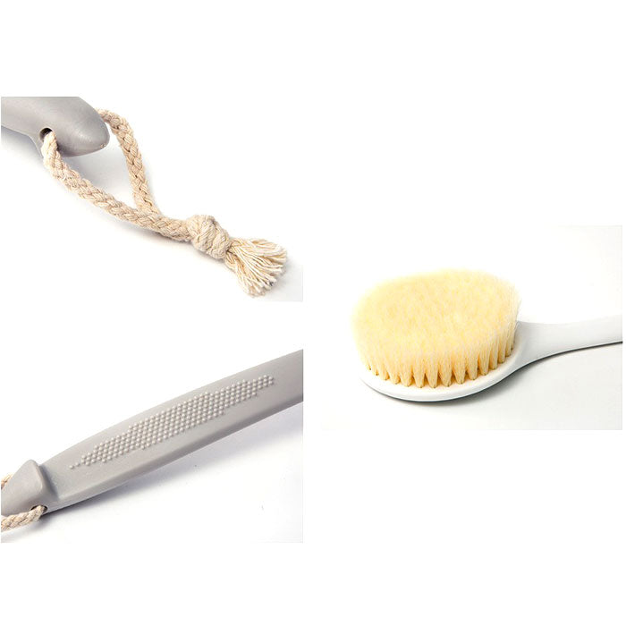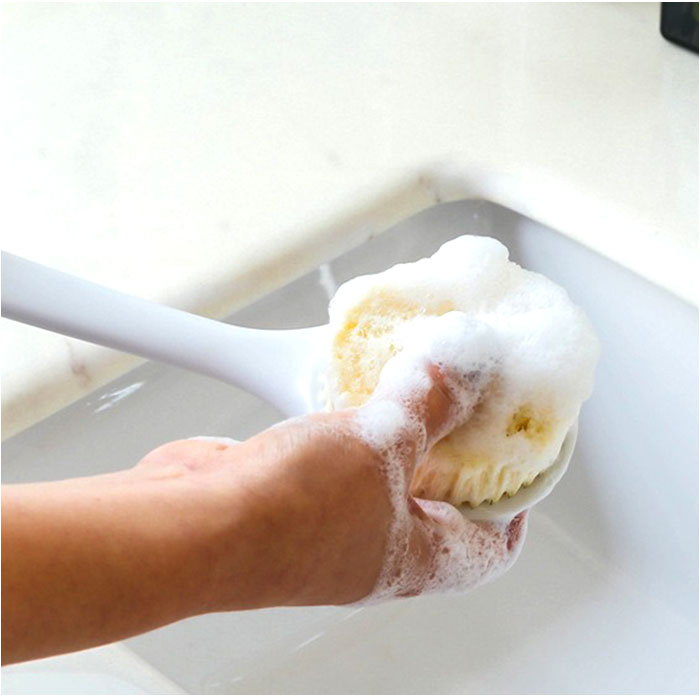 ・握りやすいハンドルは、背中などにも届くよう長めに設計。全身しっかり洗える◎