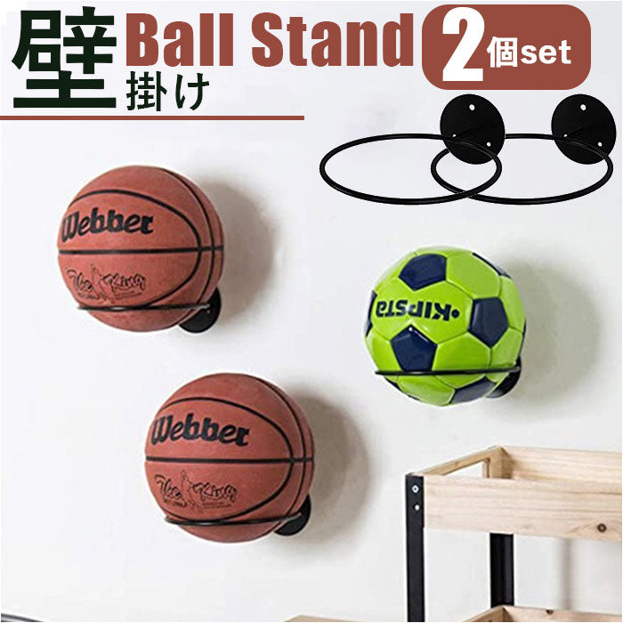 ・置き場所に困るボール類、壁に浮かせて片付け上手!「ボールスタンド 壁掛け収納 2個セット」