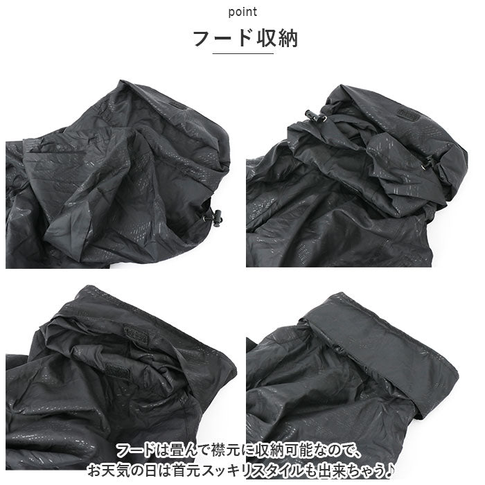 ・フードは畳んで襟元に収納可能なので、お天気の日は首元スッキリスタイルも出来ちゃう♪