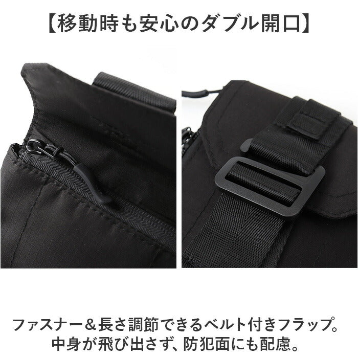 ・パスポートやスマホが入るサイズ感。軽量でいつでも肌身離さず携帯できる、容量約0.5L。