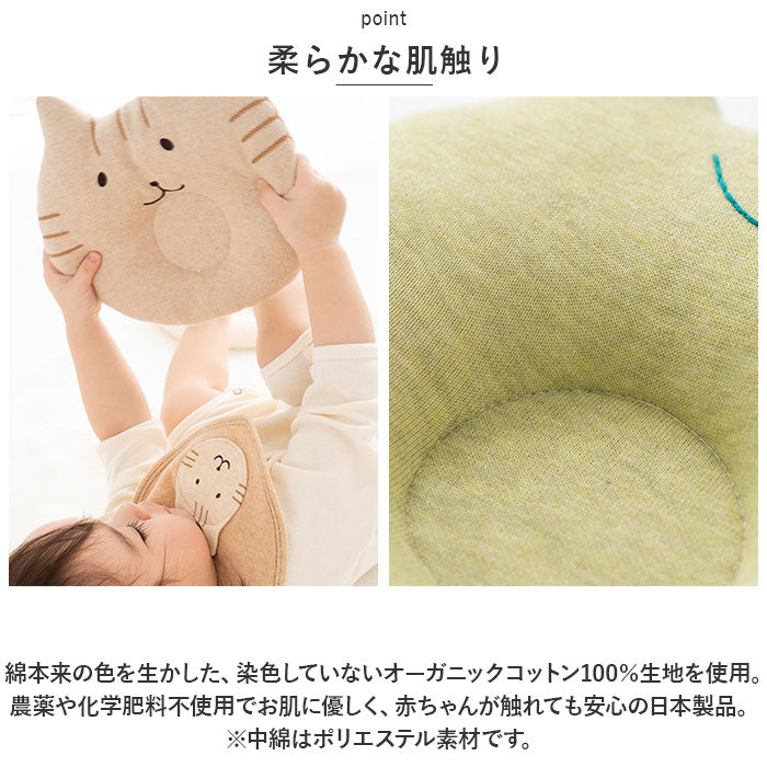 ・綿本来の色を生かした、染色していないオーガニックコットン100%生地を使用。農薬や化学肥料不使用でお肌に優しく、赤ちゃんが触れても安心の日本製品。(※中綿はポリエステル素材です。)