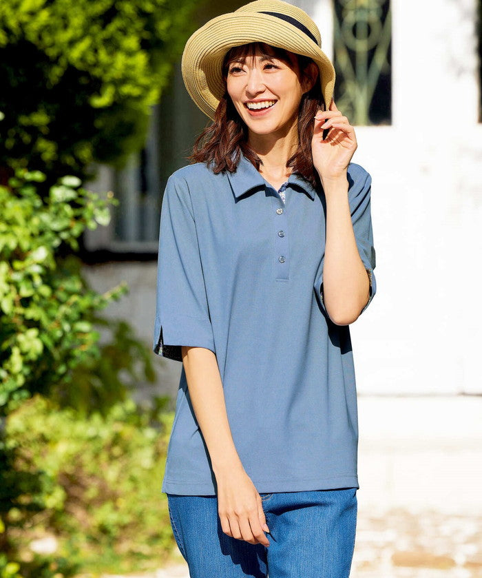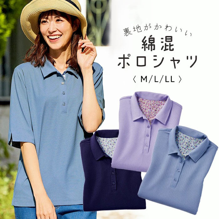 ・さらり華やぐ!裏地がかわいい綿混ポロシャツ