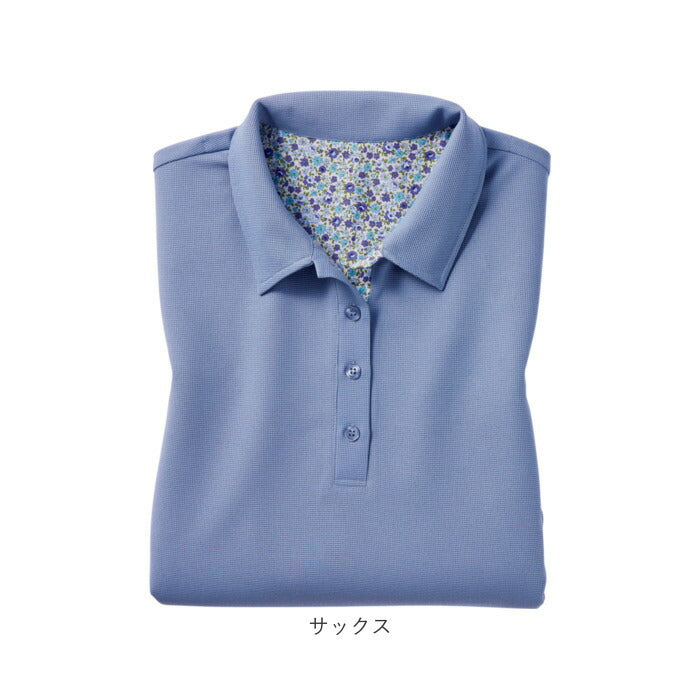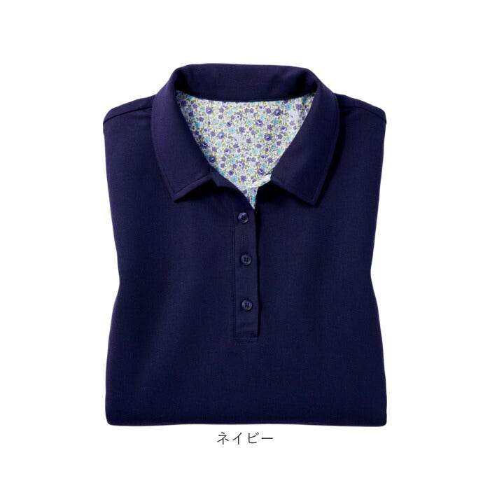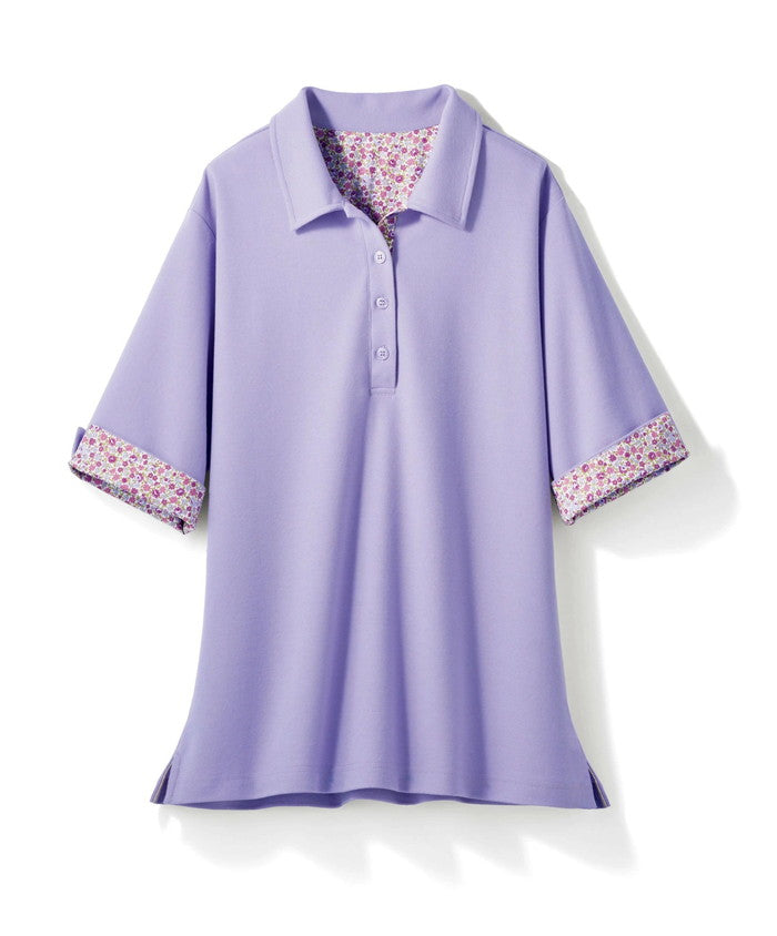 ・背裏と袖口裏に小花プリントをあしらったポロシャツ