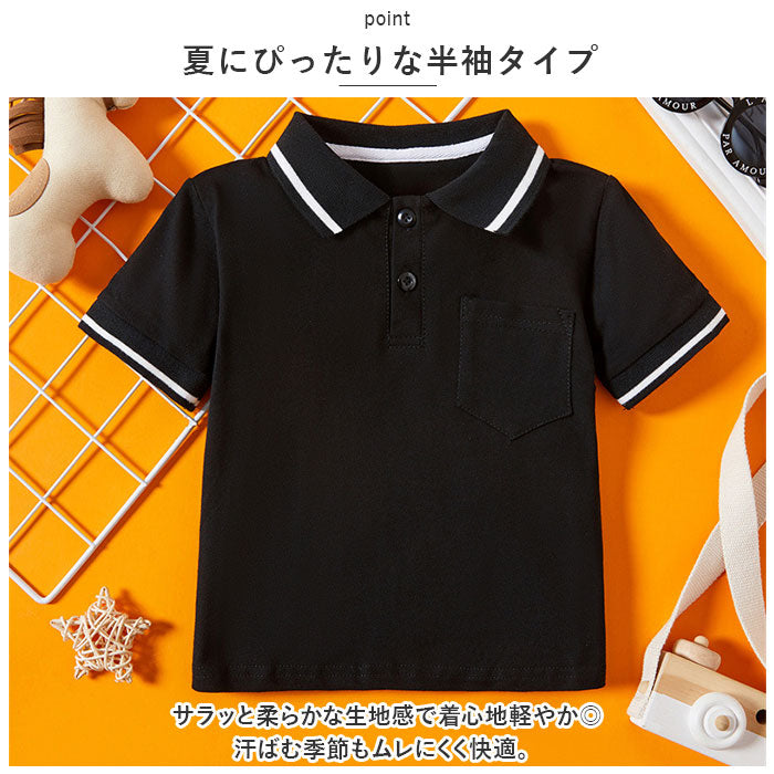 ポロシャツ 半袖 キッズ 通販 子供服 子ども トップス ポロ シャツ ポケット付き 無地 シンプル フォーマル 冠婚葬祭 男の子 女の子 スクールシャツ ライン入り 保育園 幼稚園 入園 入学