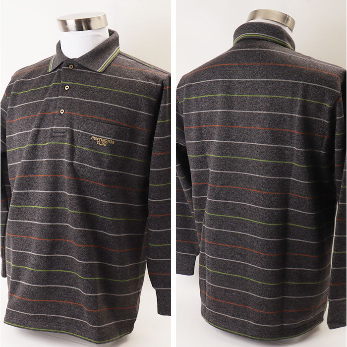 ポロシャツ 長袖 メンズ 通販 シャツ メンズシャツ トップス おしゃれ 長袖シャツ カジュアルシャツ カジュアル 長袖ポロシャツ ボーダーポロシャツ ボーダー HUNTINGTON CLUB