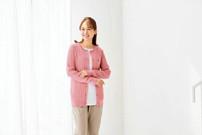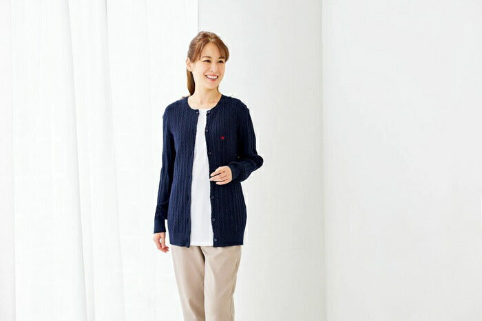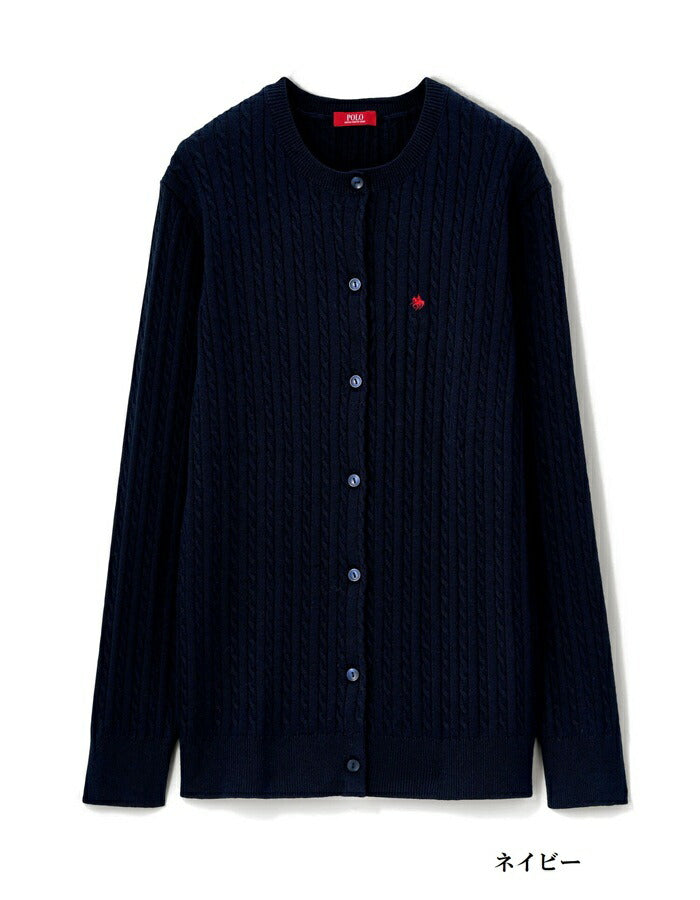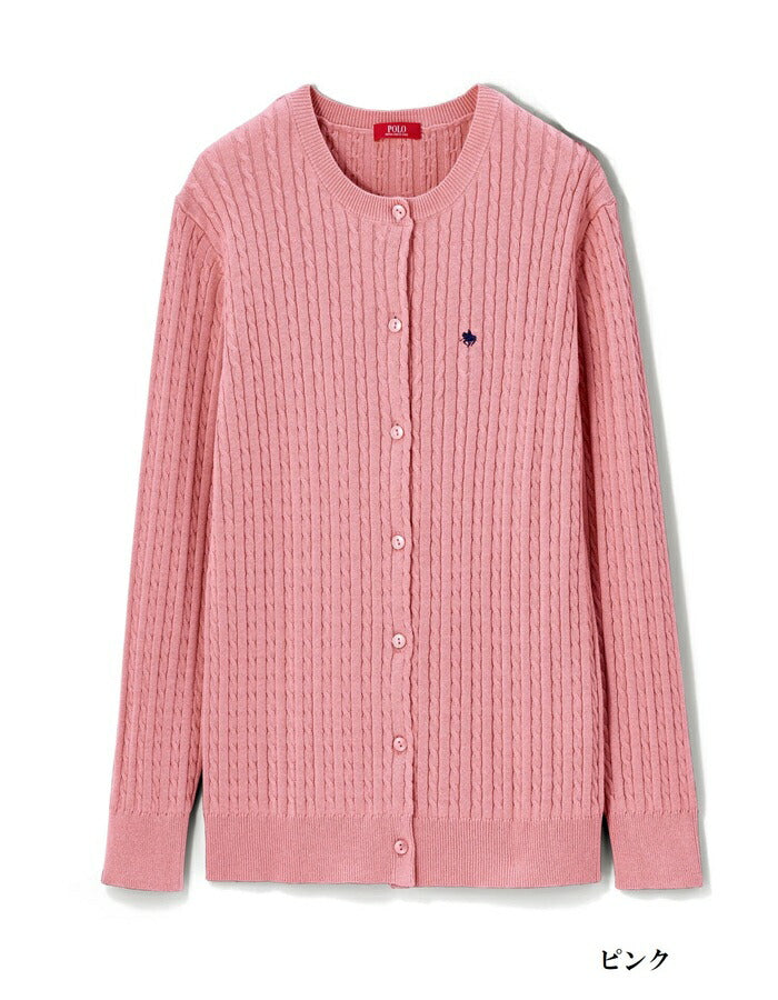 ポロ ビーシーエス ニットカーディガン レディース 長袖 961727 通販 ニット カーディガン 上着 羽織 羽織り カーデ 前開き ケーブル柄 しわになりにくい 寒さ対策 大人 上品 女性用 女性