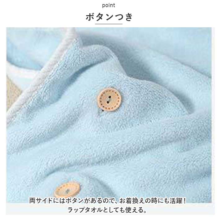 ・両サイドにはボタンがあるので、お着換えの時にも活躍!ラップタオルとしても使える。