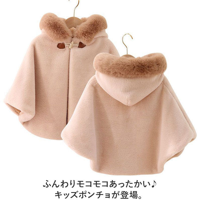 ポンチョ キッズ 通販 キッズポンチョ マント コート カーディガン 羽織り 羽織 子供服 子ども服 フード付き フード ボア 暖かい あたたかい あったか もこもこ モコモコ ふわふわ
