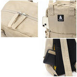 ・背負うのはもちろん!上部のハンドルを使って手持ちも。ハンドルをまとめるスナップボタンベルト付き。