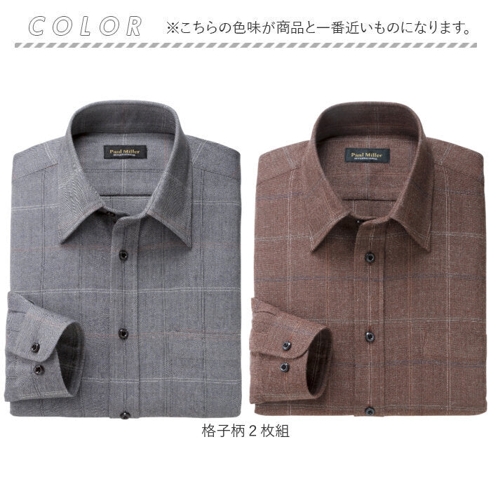 ポールミラー シャツ 長袖 2枚 メンズ 通販 メンズシャツ トップス おしゃれ 長袖シャツ カジュアルシャツ カジュアル セット ウール混 格子柄 格子 PAUL MILLER 贈り物 ギフト シニア