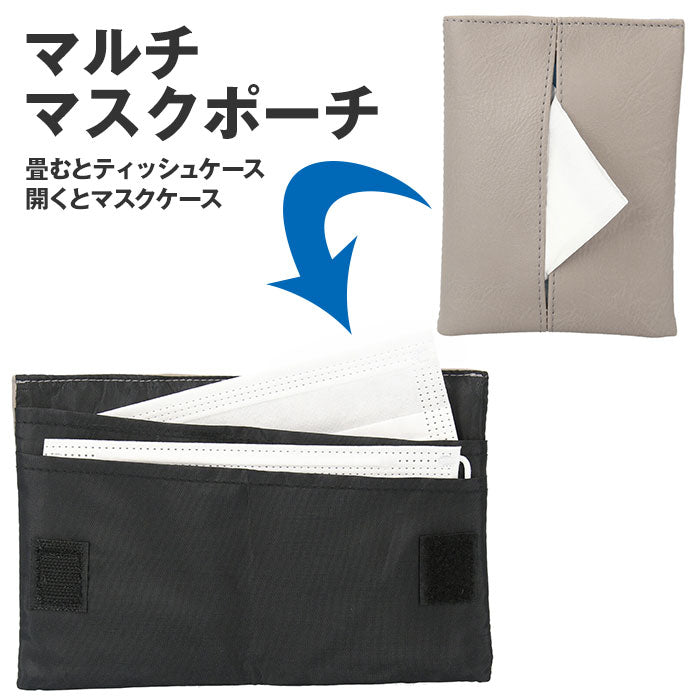 ・たたむとティッシュケースに、開くとマスクケースになる便利な収納アイテムのマルチマスクポーチ。