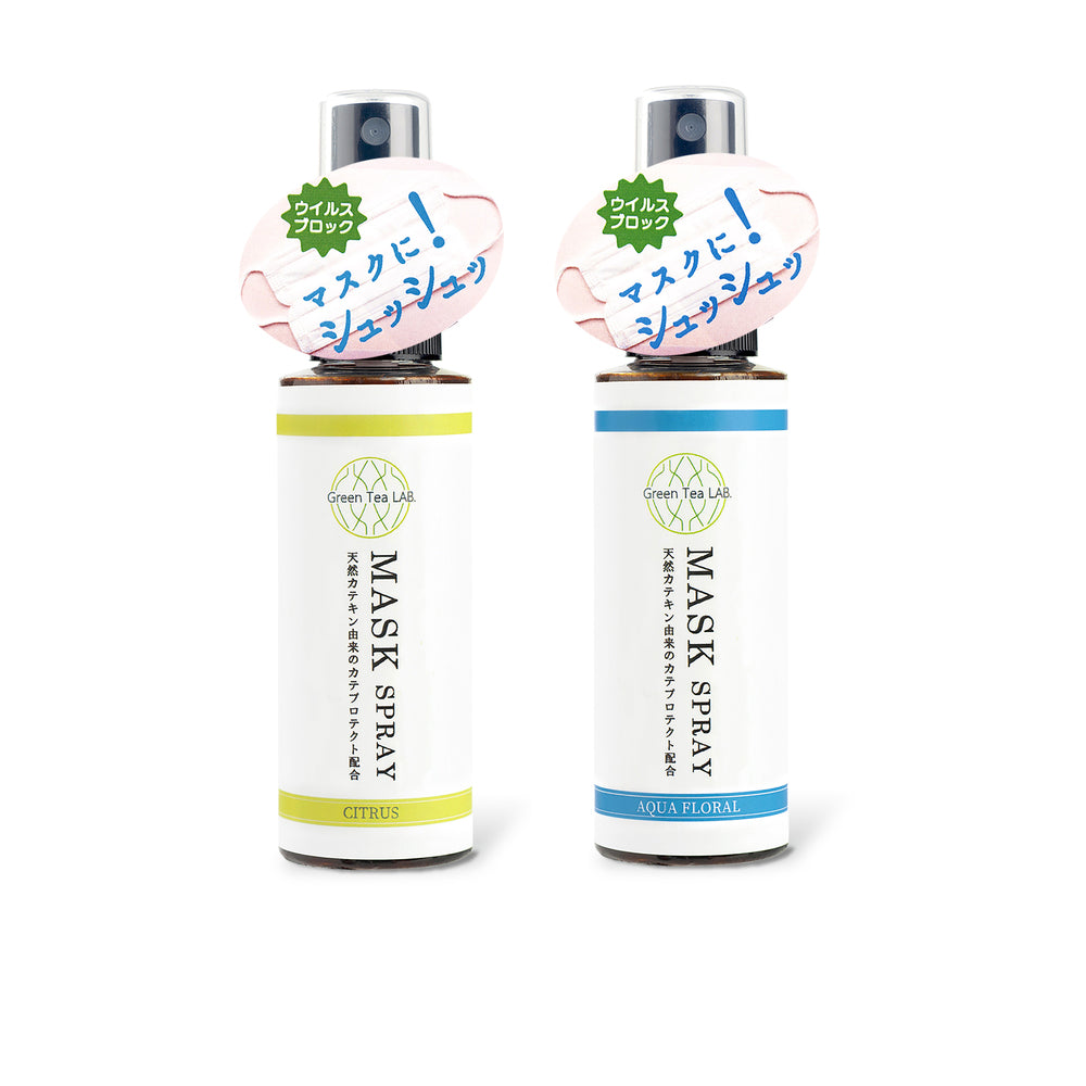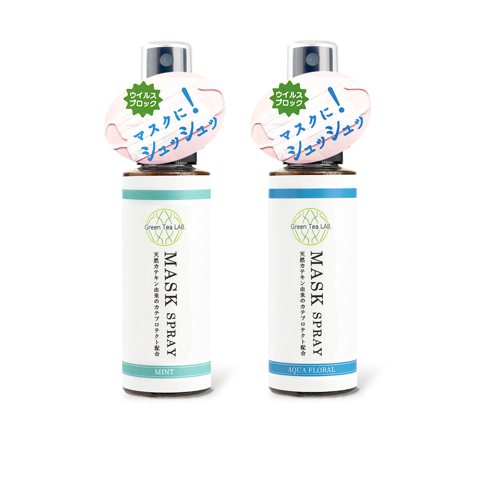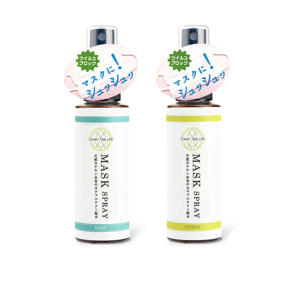 ・マスクにシュッシュッと簡単スプレー!フレッシュアロマの香りで手軽にウィルスブロック!グリーンティーラボの抗菌・抗ウィルスマスクスプレーが2本セットになって新登場。