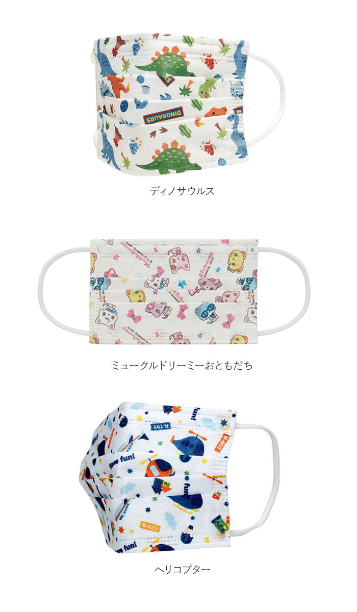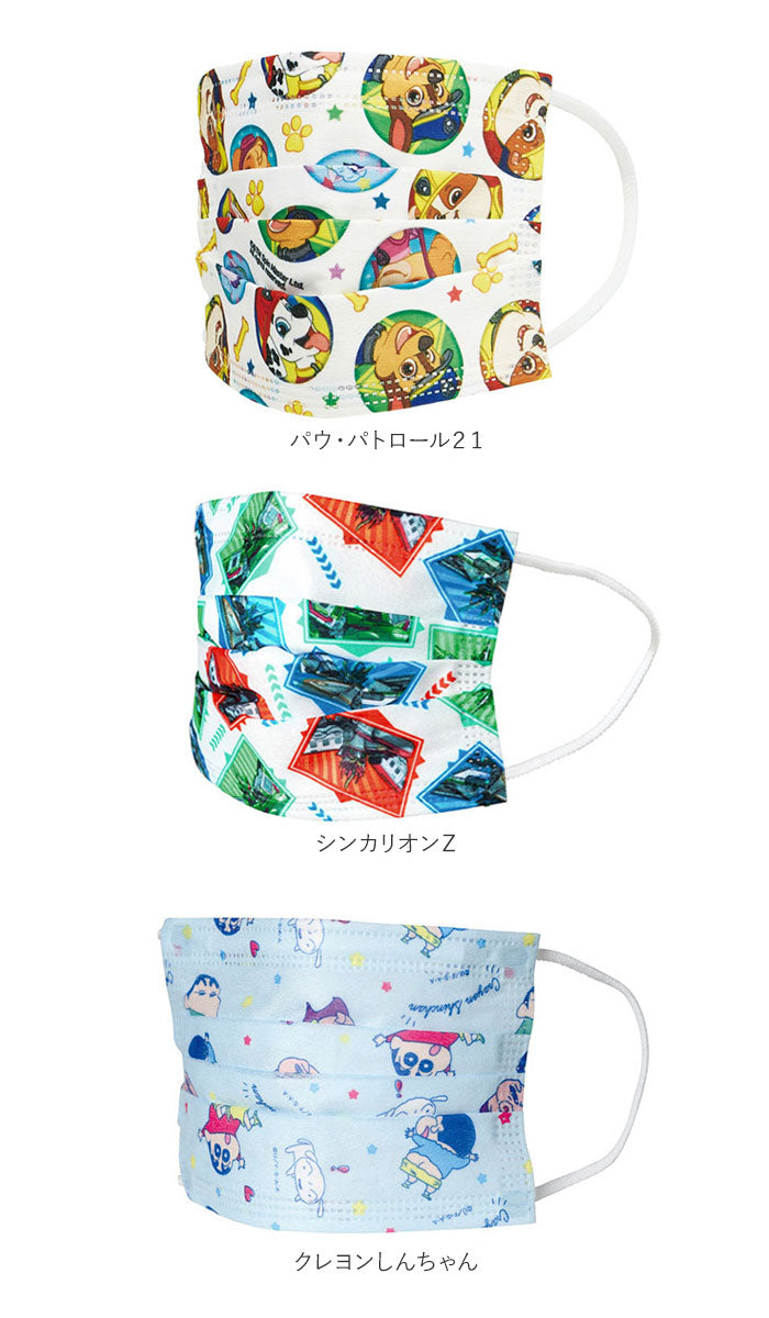 ・可愛いキャラクター柄の「子ども用プリーツ不織布マスク(10枚入り)3個セット」が新登場♪