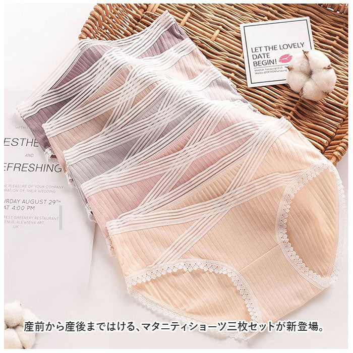 ・産前から産後まではける、マタニティショーツ三枚セットが新登場。