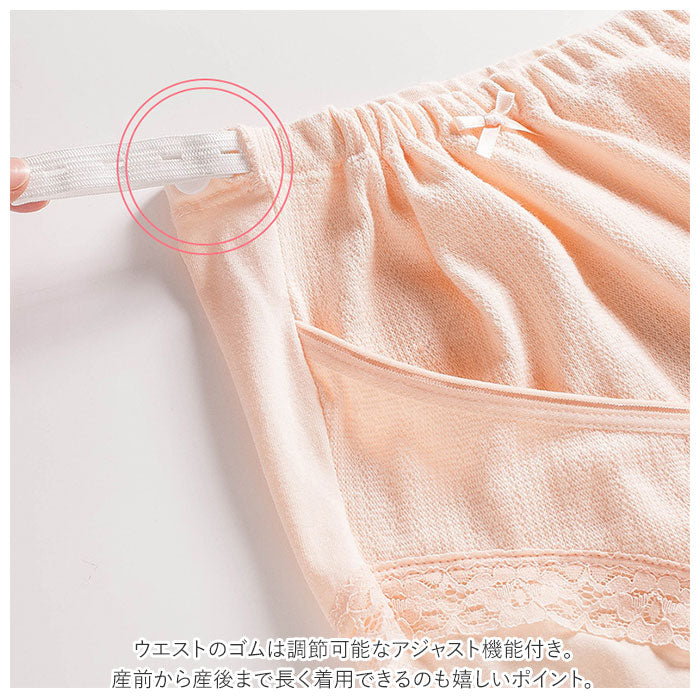 ・ウエストのゴムは調節可能なアジャスト機能付き。産前から産後まで長く着用できるのも嬉しいポイント。
