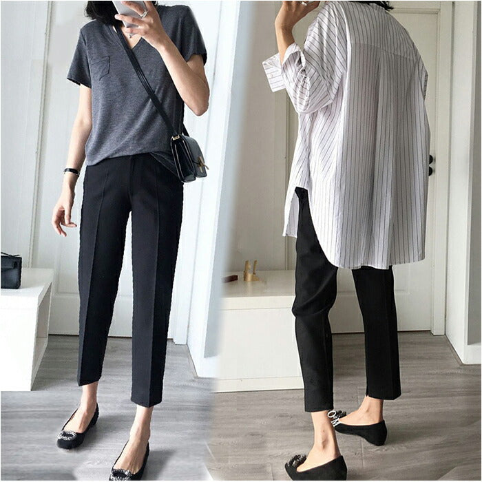 ・脚元がすらりと見えるカタチ。こなれ感のあるアンクル丈で、パンプスなどとの相性もばっちり。