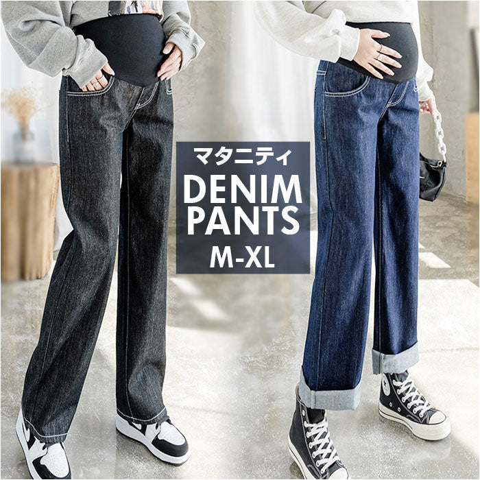 マタニティ デニム ワイド 通販 マタニティパンツ ワイドパンツ デニムパンツ ボトムス 動きやすい オールシーズン 産前産後 おしゃれ お洒落 かわいい レディースパンツ ルームウェア