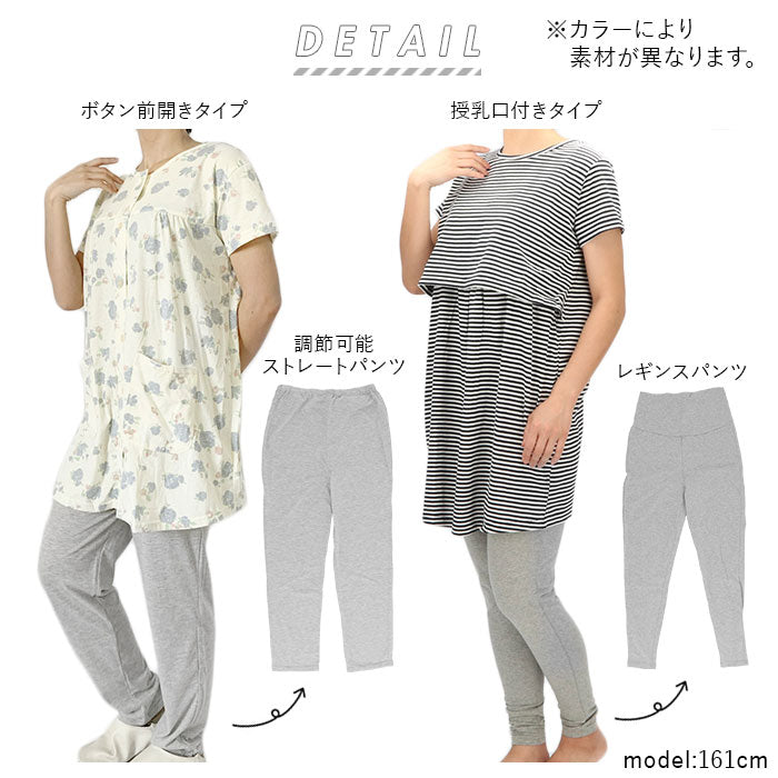 マタニティ パジャマ 通販 春夏 前開き 半袖 可愛い ズボン 長ズボン おしゃれ ウェスト調節 入院準備 マタニティウェア 出産準備 ボーダー ネイビー グレー サックス