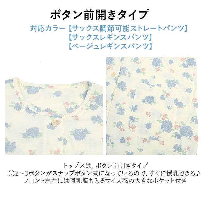 ・トップスは、ボタン前開きタイプ。第2~3ボタンがスナップボタン式になっているので、すぐに授乳できるのが嬉しい!