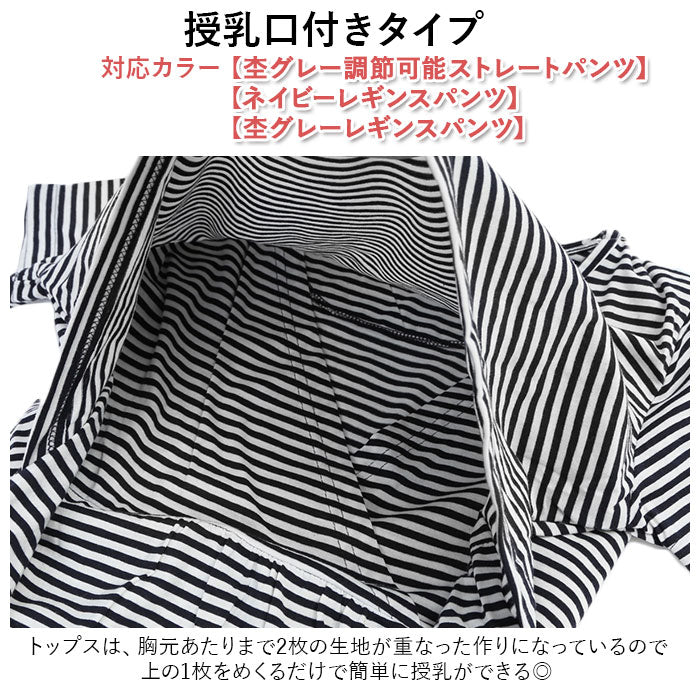 ・トップスは、胸元あたりまで2枚の生地が重なった作りになっているので、上の1枚をめくるだけで簡単に授乳ができる◎