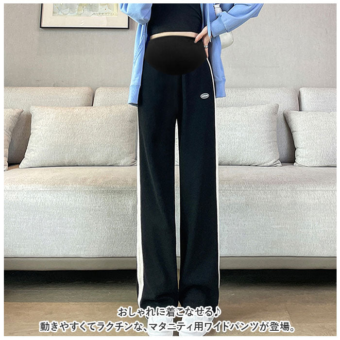 マタニティ パンツ 通販 マタニティワイドパンツ ズボン 長ズボン ロングパンツ マタニティウェア ボトムス ストレート ルーム 部屋着 妊婦服 シンプル カジュアル 外出 お出かけ 産前
