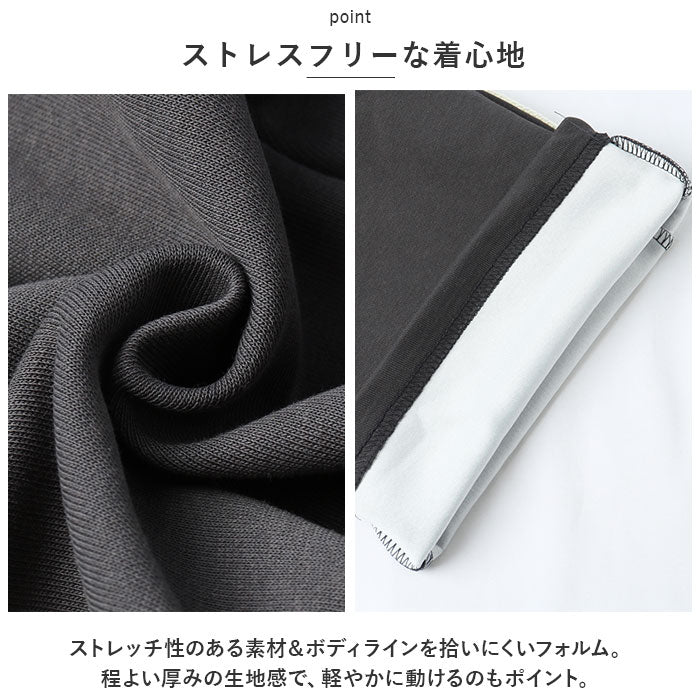 ・ストレッチ性のある素材&ボディラインを拾いにくいフォルム。程よい厚みの生地感で、軽やかに動けるのもポイント。