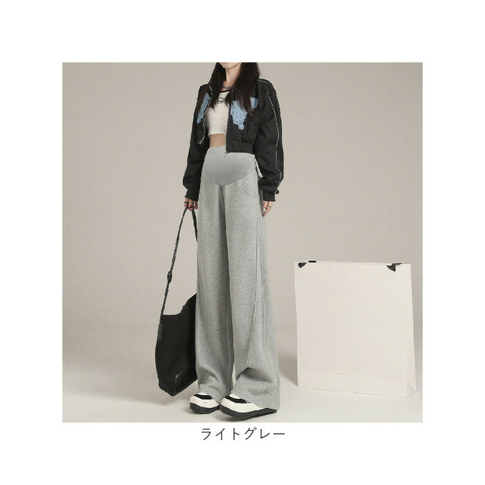 マタニティ パンツ 通販 マタニティワイドパンツ マタニティウェア ロングパンツ ズボン 長ズボン ボトムス ストレート ルーム 部屋着 妊婦服 シンプル 無地 カジュアル 外出 お出かけ
