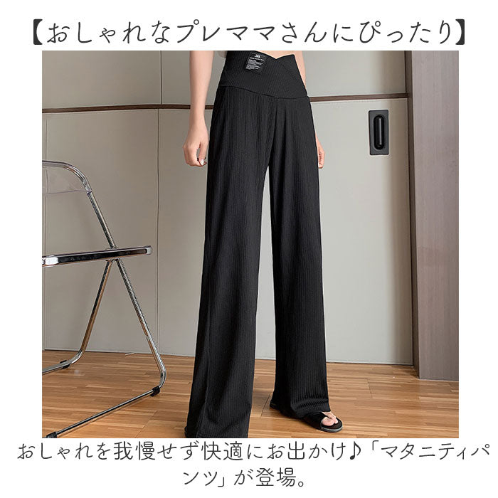 マタニティ ワイドパンツ 丈 長め 通販 リブパンツ マタニティーパンツ マタニティウェア 妊婦服 マタニティー ズボン パンツ ウェア ボトムス オシャレ 可愛い 春 夏 秋 ルームウエア