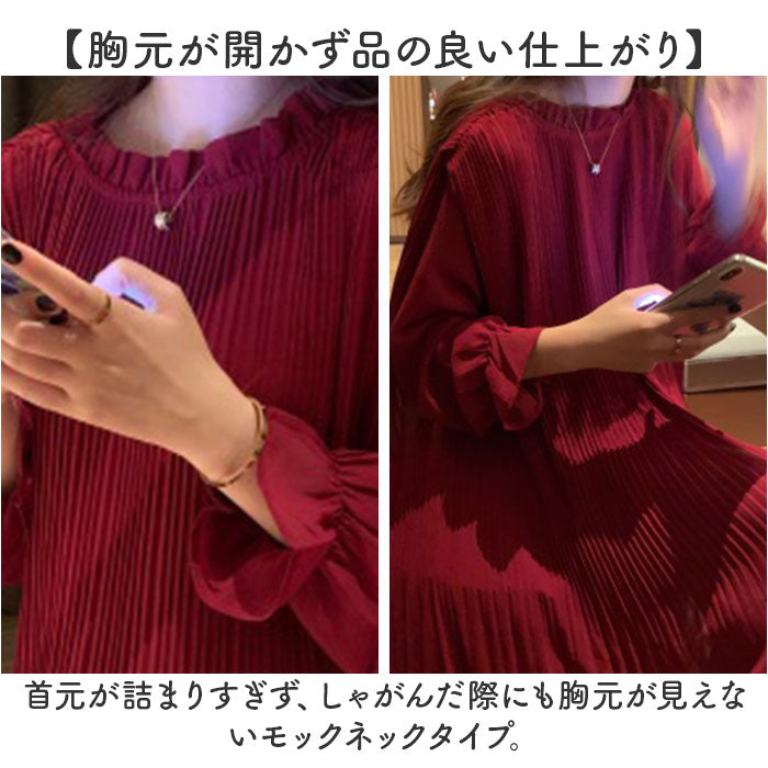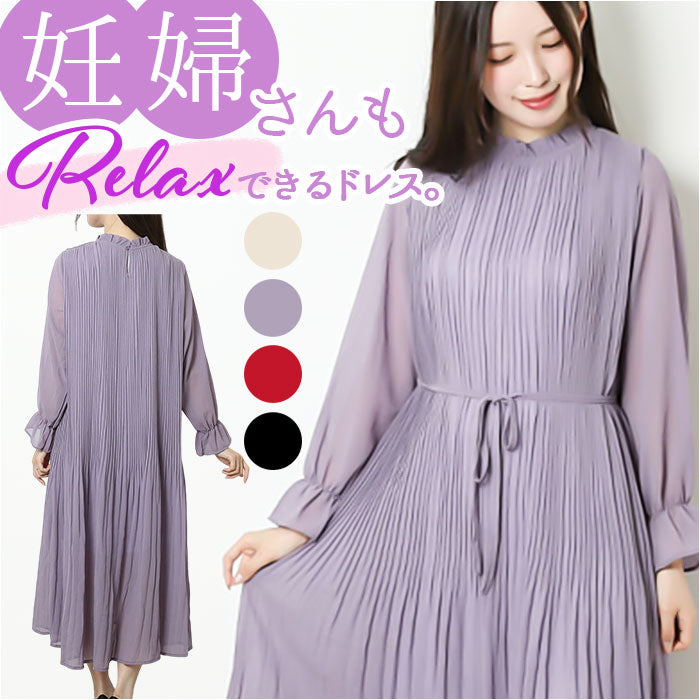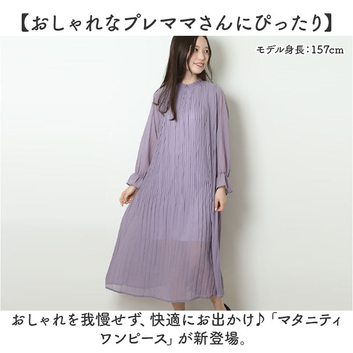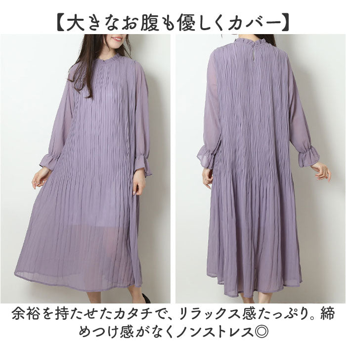 マタニティ ワンピース ドレス 長袖 レディース 通販 ロングワンピ ロングワンピース ワンピ プリーツスカート プリーツ スカート ギャザースカート ギャザー ロング ロング丈 フリル