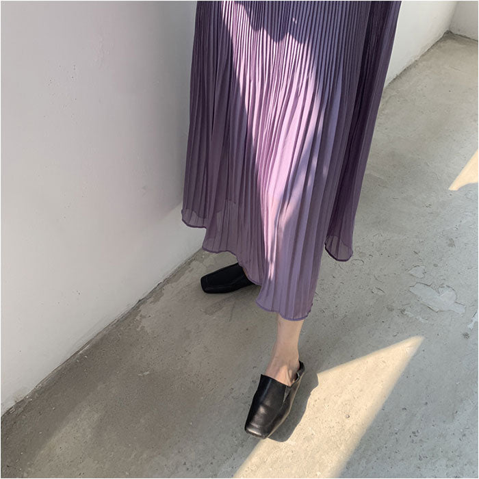 ・プリーツを入れて、動くたびにふんわり揺れるシルエット。女性らしい柔らかな印象に。